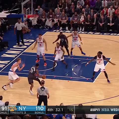 Partido entre los Knicks y los Nets. A 30 segundos del final, Hollis-Jefferson se va al suelo. Willy Hernangómez se dispone a ayudarle, pero su compañero Brandon Jennings lo evita tirando de su brazo.