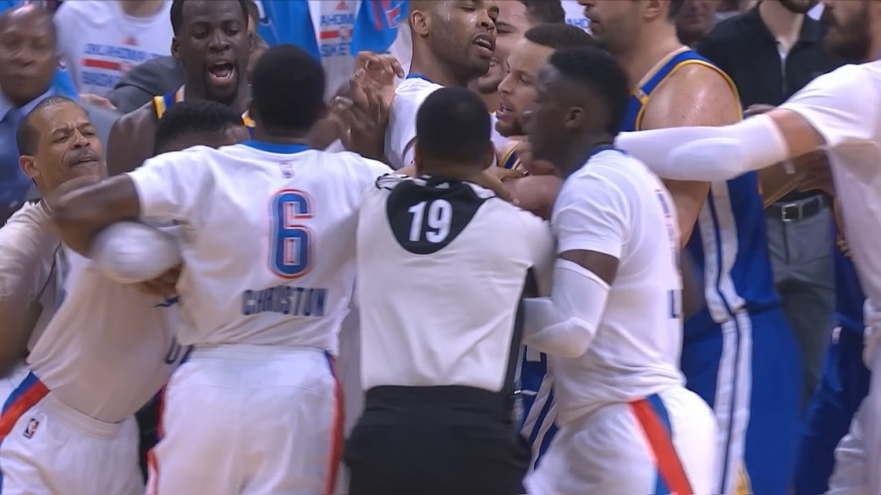 Stephen Curry y Russell Westbrook intercambiaron varios empujones tras un pique entre Curry y el novato Christon.