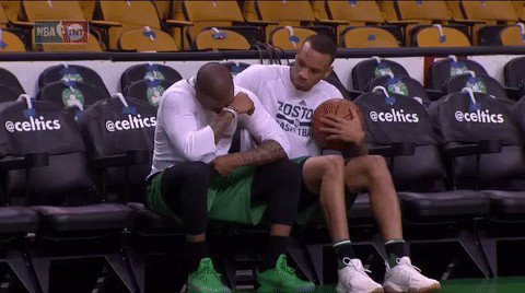 Su compañero Avery Bradley le tiende su mano, intentando animar a la pequeña hormiga verde. El partido del Garden lo terminó ganando el equipo de Mirotic (102-106).