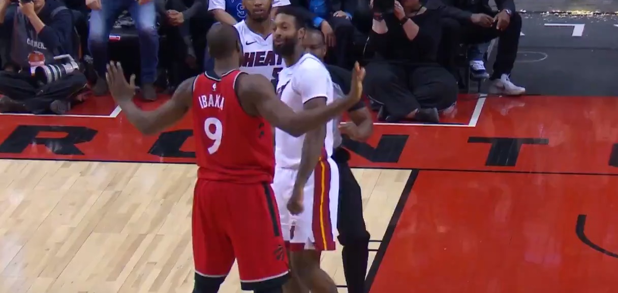 Serge Ibaka, junto a James Johnson, han protagonizado la primera pelea del año en la NBA. Ambos jugadores fueron expulsados después de intercambiar un par de puñetazos a los 7:50 minutos del tercer cuarto. La pelea no fue a más porque intervino el árbitro y luego sus respectivos compañeros de Toronto Raptors y Miami Heat.