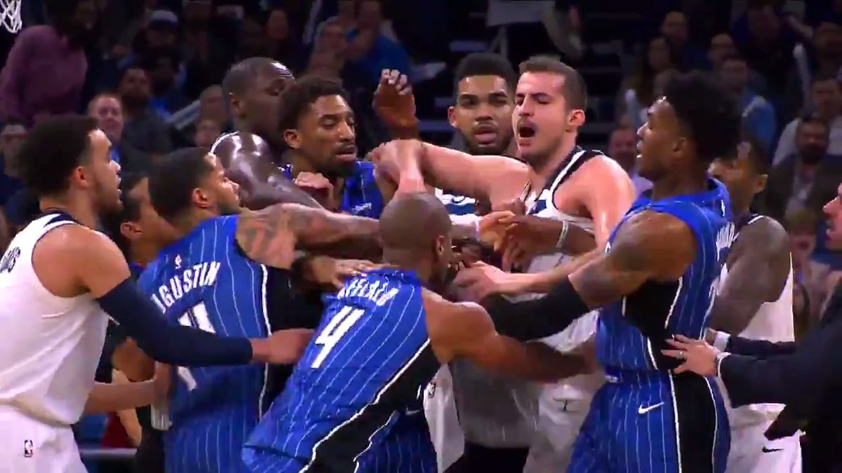 Arron Afflalo y Nemanja Bjelica protagonizaron una pelea en pleno partido entre los Orlando Magic y los Timberwolves de Minnesota. La NBA lleva varias tanganas esta temporada.