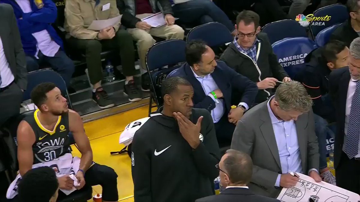 En un tiempo muerto, Steve Kerr decidió ceder la pizarra a André Iguodala para que, por un minuto, ejerciera de entrenador.