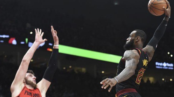 La estrella de los Cleveland Cavaliers destrozó el aro en el choque que enfrentó a su equipo contra los Portland Trail Blazers.