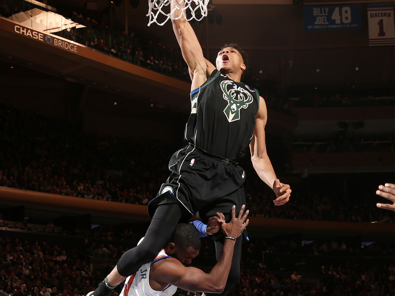 El griego de los Bucks pasó por encima, literalmente, de Tim Hardaway JR. Una bestialidad solo al alcance de un extraterrestre.