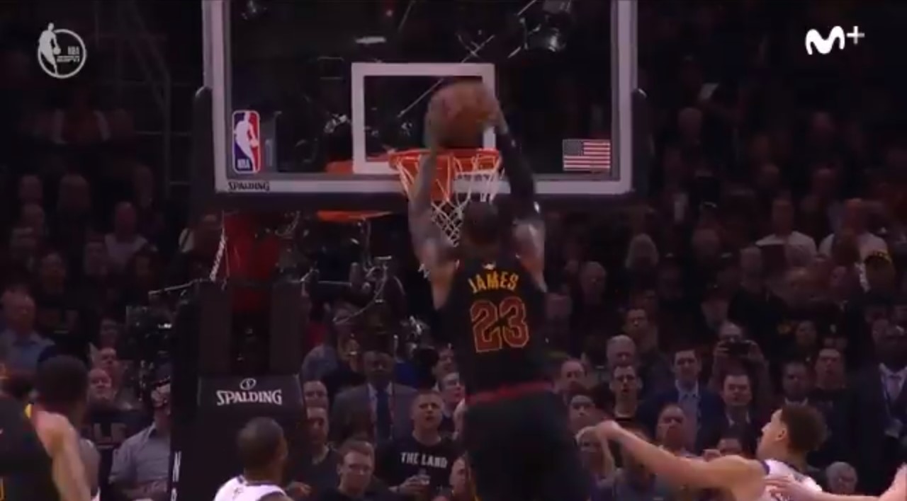 Con sólo dos minutos transcurridos de encuentro, LeBron James, la estrella de los Cleveland Cavaliers, dejó una jugada para la historia.