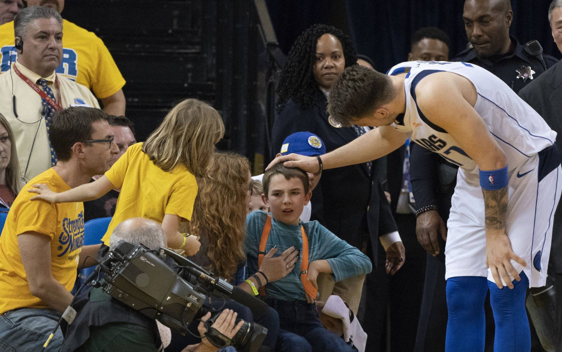 Ante los Warriors, el esloveno golpeó accidentalmente a un niño a pie de pista tras realizar un mate. Se preocupó por él en pleno el partido y al final lo obsequió con una camiseta firmada.