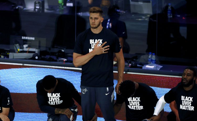El jugador de los Miami Heat, Meyers Leonard, decidió mantenerse en pie durante la ceremonía del himno que tiene lugar antes de los partidos en la NBA.