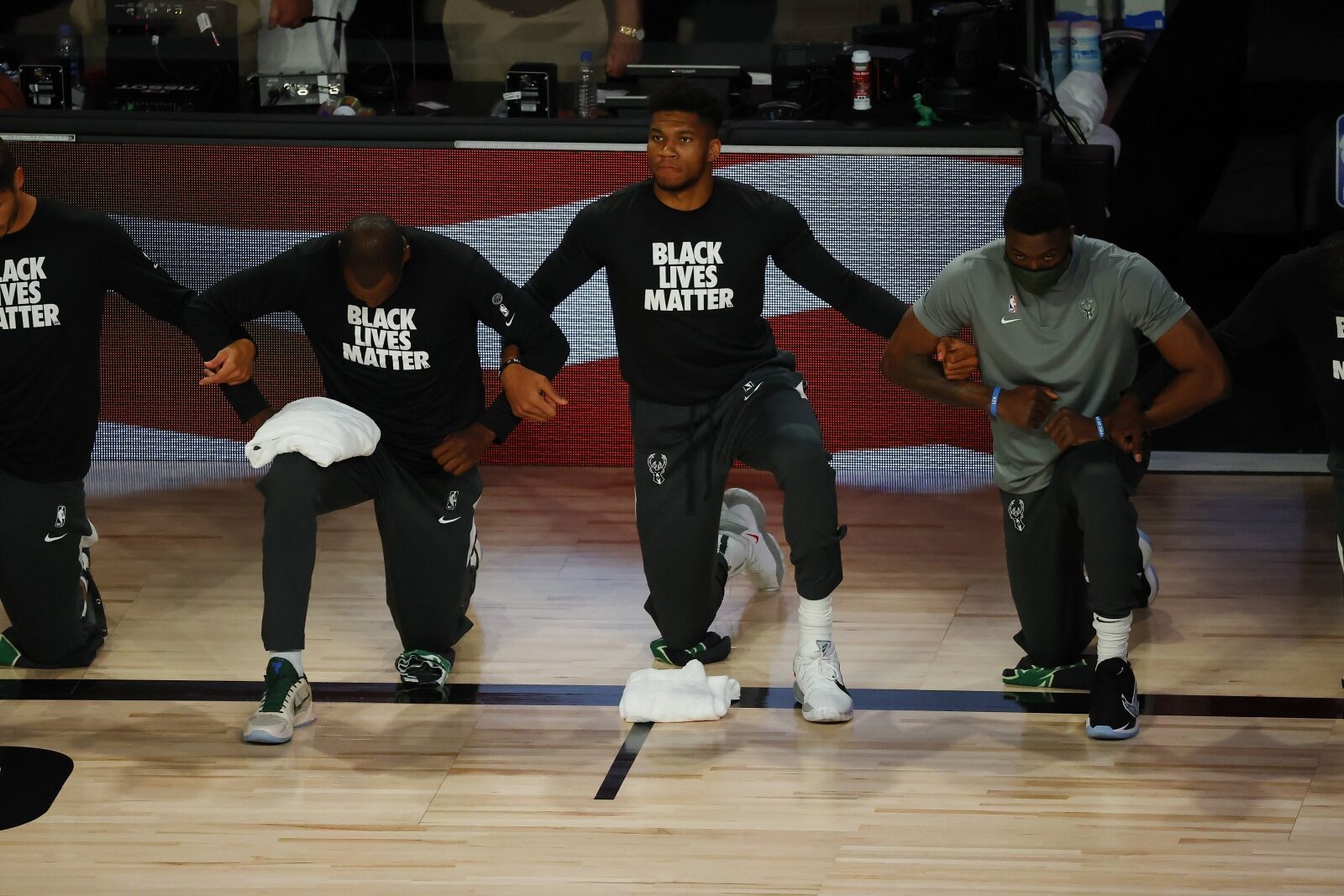 Pero es precisamente la historia de su gran estrella, Giannis Antetokounmpo (actual MVP de la NBA), sobre la que más se ha escrito. Nacido en Atenas pero hijo de familia nigeriana, se ha convertido en un auténtico icono global después de superar una compleja historia durante su infancia, que le llevó a trabajar de niño en la venta ambulante de la capital griega y a padecer, junto a los suyos, no pocos problemas de discriminación en Atenas. A lo largo de los años, Antetokounmpo ha hablado en ocasiones sobre el racismo sufrido en sus carnes en su juventud, lo que le ha llevado a implicarse directamente con dicha situación, aunque es un tipo de carácter reservado y poco dado a declaraciones grandilocuentes. Sin embargo, el pasado mes de febrero, durante un acto paralelo al 'All-Star Weekend' de Chicago, Barack Obama le pidió "hacerse algo más público", aprovechando su ejemplo y su historia de superación. Poco después, se puso a la cabeza de la manifestación del movimiento 'Black lives matter' el 6 de junio en Milwaukee junto a su hermano Thanasis, también actualmente jugador de los Bucks, y otros compañeros como Brook Lopez, Frank Mason, Donte DiVicenzo y el propio Sterling Brown. Con todo este bagaje, es lógico asumir que el vestuario del equipo de Wisconsin sea uno de los más implicados con esta reivindicación.