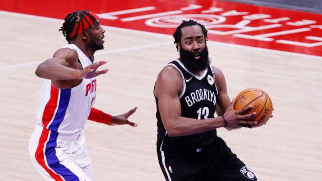 Harden anotó 44 puntos y se acercó al triple-doble con los Nets de Brooklyn, que derrotaron a domicilio 111-113 a los Pistons de Detroit.