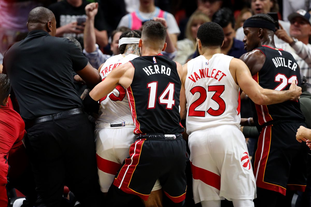 Acaba de empezar la temporada baloncestística en la mejor liga del mundo y la primera trifulca no ha tardado en llegar. Ha ocurrido esta madrugada en un Miami Heat – Toronto Raptors que terminó con victoria para los de Florida (109 – 112).