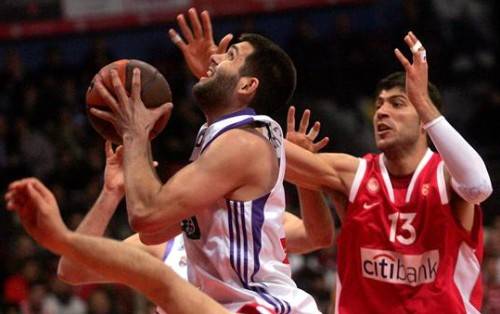 Dos triples de Bullock acercaron al Madrid a un punto, momentos antes de que los hombres de Plaza perdieran a Hervelle. Y cuando todo estaba donde los españoles querían, llegar al final con opciones, los madridistas perdieron tres ataques seguidos: Mumbrú y Bullock fallaron dos triples, y a Reyes le taponaron, de forma antirreglamentaria, la tercera ocasión, esta vez debajo del aro y tras una canasta de Printezis (72-69) y la cuarta falta de Vujcic. El Madrid entonces defendía en una zona 2-3.