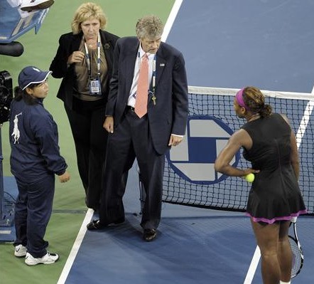 Serena Williams, cuando iba por detrás en el marcador de su duelo con Clijsters, tras perder el primer set y con 6-5 en el segundo, el servicio de su parte pero 15-30 para su rival, a dos puntos del triunfo, la juez de línea le señaló una falta de pie en su segundo saque, que suponía la doble falta y dos puntos de partido para la raqueta europea.