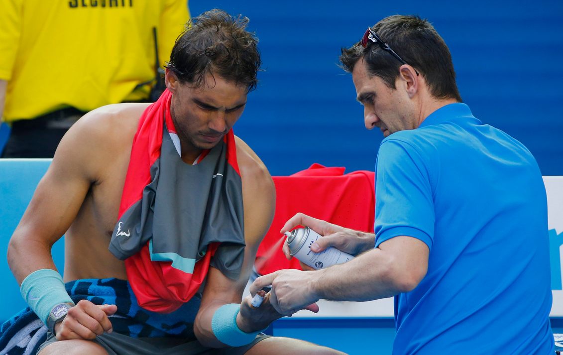 Una de las primeras medidas fue aplicar un aerosol en la mano herida del tenista.