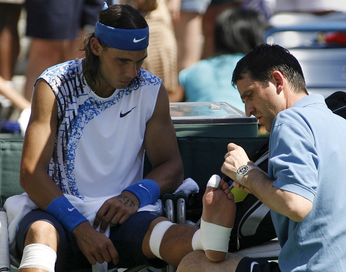 En 2008, Rafa Nadal alcanzó las semifinales del Masters 1000 de Indian Wells, donde fue derrotado por Novak Djokovic por 3-6, 2-6. El español concluyó el primer set con molestias en el pie izquierdo