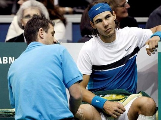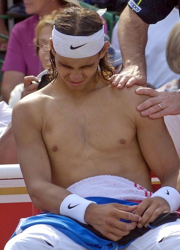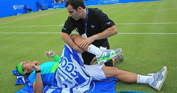 En junio de 2011, Rafa Nadal derrotó a Juan Martín del Potro en octavos de final de Wimbledon, aunque sufrió una lesión en el primer set del partido, que le obligó a reclamar la asistencia del fisioterapeuta.