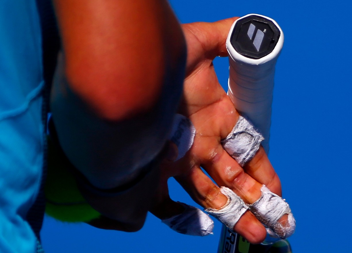 Rafa Nadal probó con diferentes apósitos para tratar de reducir al mínimo las llagas que sufría en su mano izquierda durante el Open de Australia.