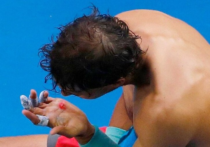 Una herida abierta en su mano izquierda puso en peligro su participación en el Abierto de Australia de 2014. Rafa Nadal admitió que era una lesión difícil de tratar y que le dificultaba el servicio.
