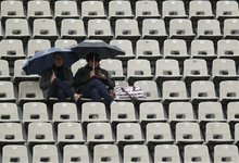 Aficionados con paraguas en las gradas de la pista central de París. | EFE