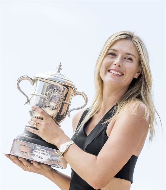 Sharapova, que igualó a la suiza Martina Hingis en número de Grand Slam ganados, dedicó el domingo alucir su trofeo por la capital francesa.