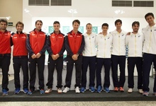 Los jugadores españoles y brasileños que se enfrentarán en la Copa Davis en Sao Paulo. | EFE