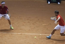 David Marrero (i) y Marc López, durante el partido de dobles ante Brasil. | EFE
