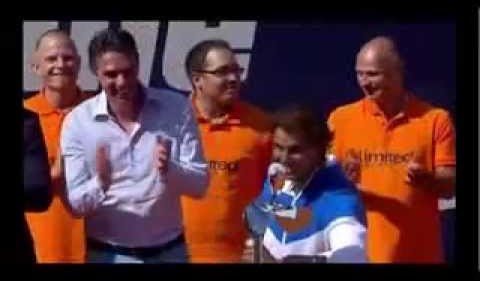 Rafa Nadal sufrió varios calambres mientras recogía el título de campeón en Hamburgo. "Vais a tener que llevarme en camilla" dijo.