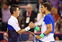 Rafa Nadal saluda deportivamente a Nishikori en Montreal. | EFE