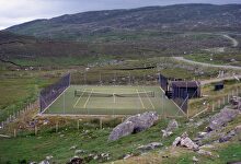 Situada en un paraje único en las islas Hébridas escocesas, de hierba artificial, es la pista más remota que se recuerda.