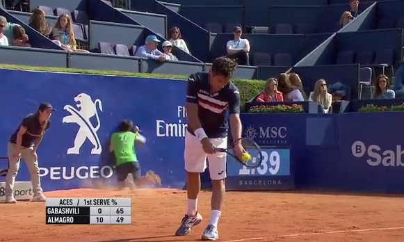 Durante el partido entre Nico Almagro y Teimuraz Gabashvili, el chico perdió el equilibrio y se fue directo contra la valla de publicidad.