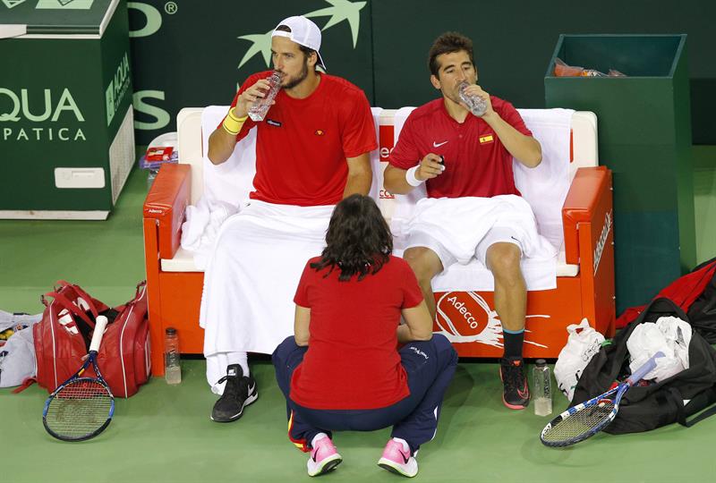 La pareja de dobles española Feliciano López y Marc López desperdiciaron la oportunidad de sentenciar ya hoy mismo la eliminatoria contra Rumanía al perder frente a Horia Tecau y Florin Mergea por 6-3, 1-6, 6-1, 5-7 y 3-6.