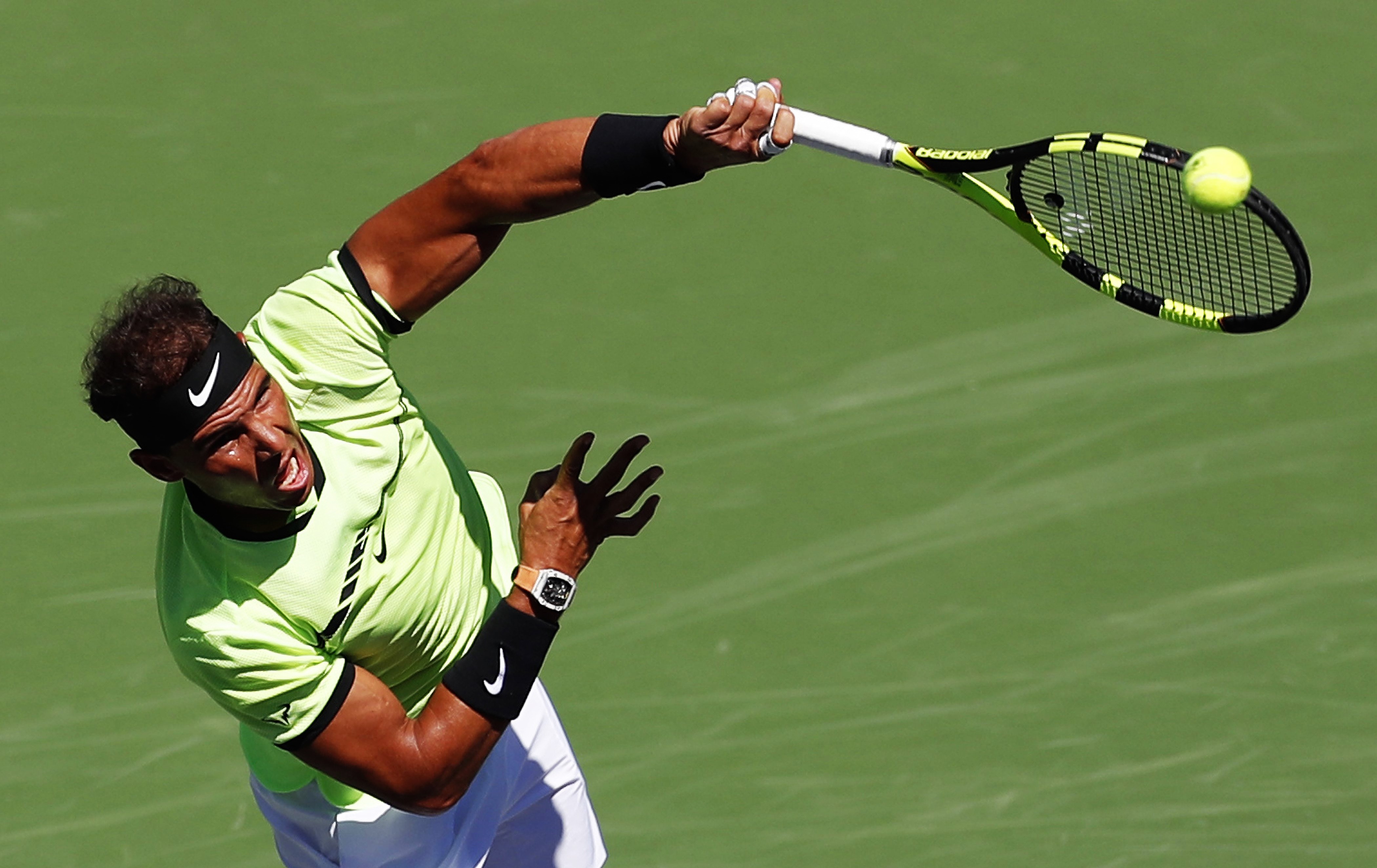 En su partido de dobles junto a Bernard Tomic, ante la pareja formada por Raven Klaasen y Rajeev Ram, el español intentó devolver una bola altísima lanzando la raqueta al aire.