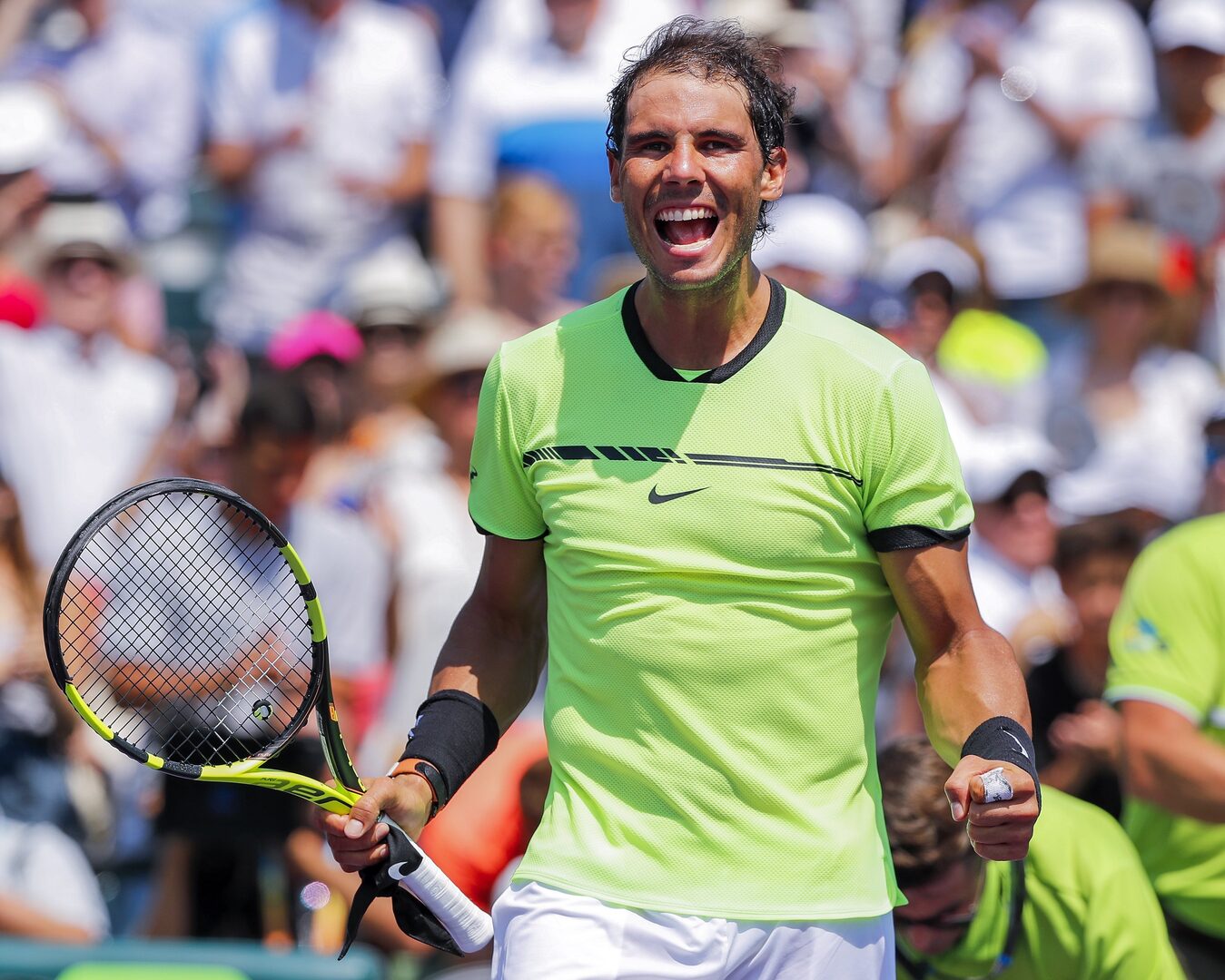 Nadal espera ganar esta vez su primer título en Miami, tras las derrotas de 2005, 2008, 2011 y 2014, y para ello deberá ganar al ex número uno Roger Federer o a Kyrgios, que se enfrentan en el partido vespertino de hoy.