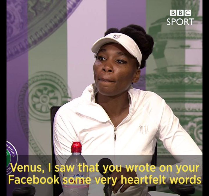 A Venus se le cortó la respiración cuando le preguntaron por el accidente por el que está siendo investigada y que le costó la vida a un hombre de 78 años que iba de copiloto en el coche que colisionó con la tenista el pasado 9 de junio en Palm Beach Gardens (Florida): ""No hay palabras para describir lo devastador que es. Estoy sin palabras. Estoy... estoy...". Tuvo que abandonar la sala de prensa para volver minutos después.