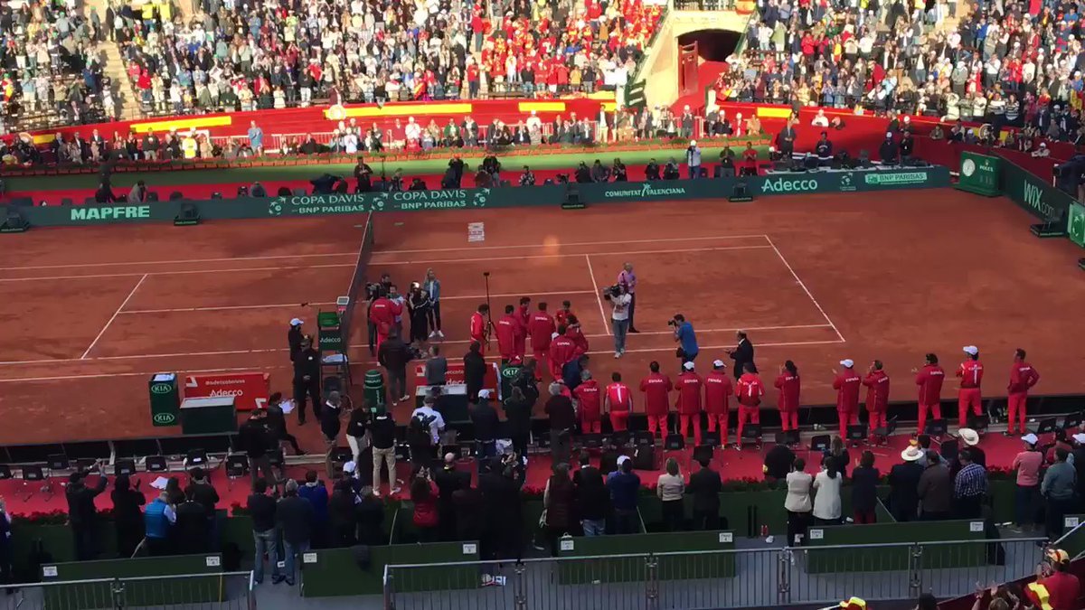 David Ferrer, manteado por sus compañeros en la Copa Davis