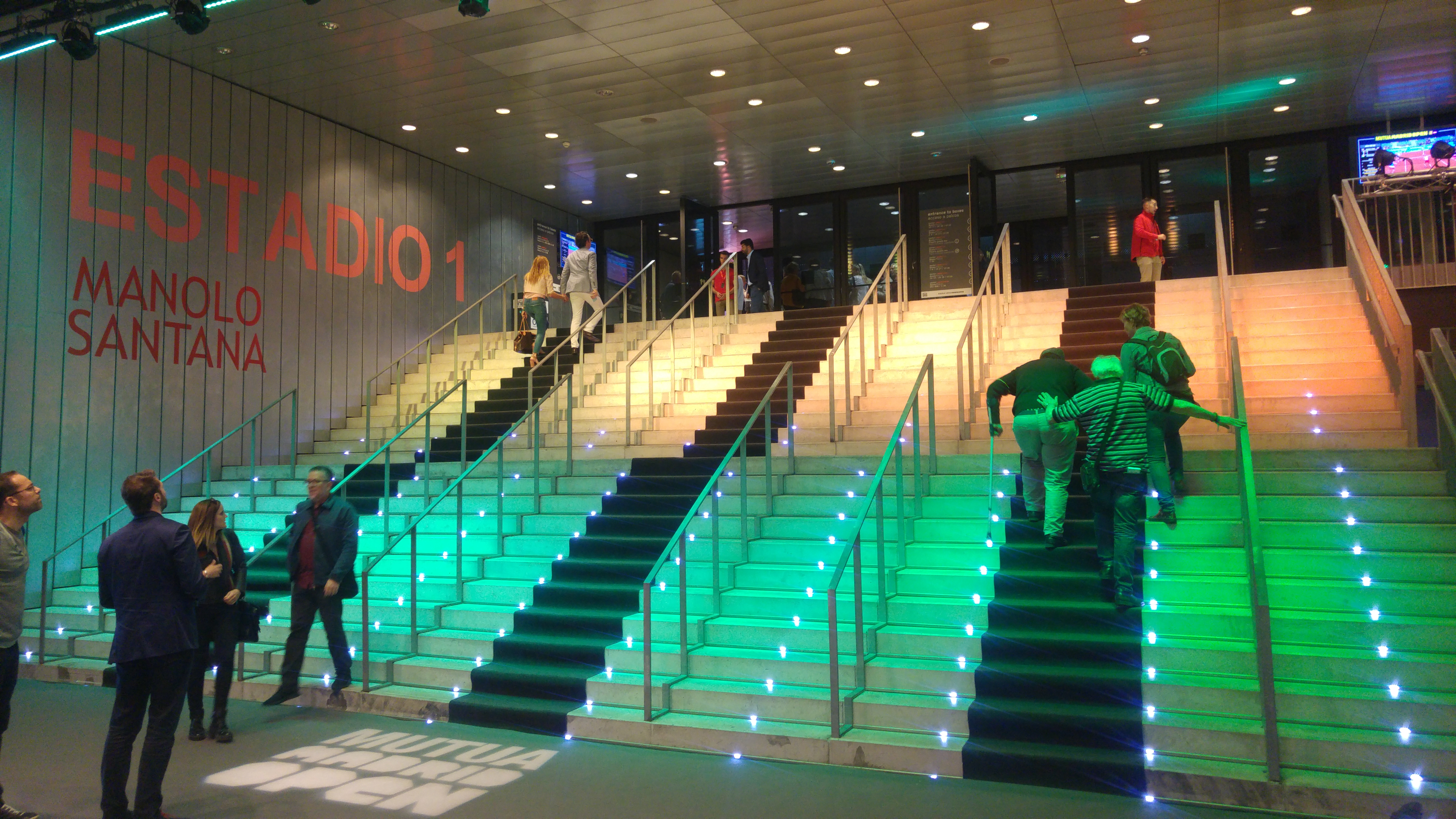 Cabina de retransmisión del equipo de Setball (Laura Ortega, Edu Salán y Fran Campos)