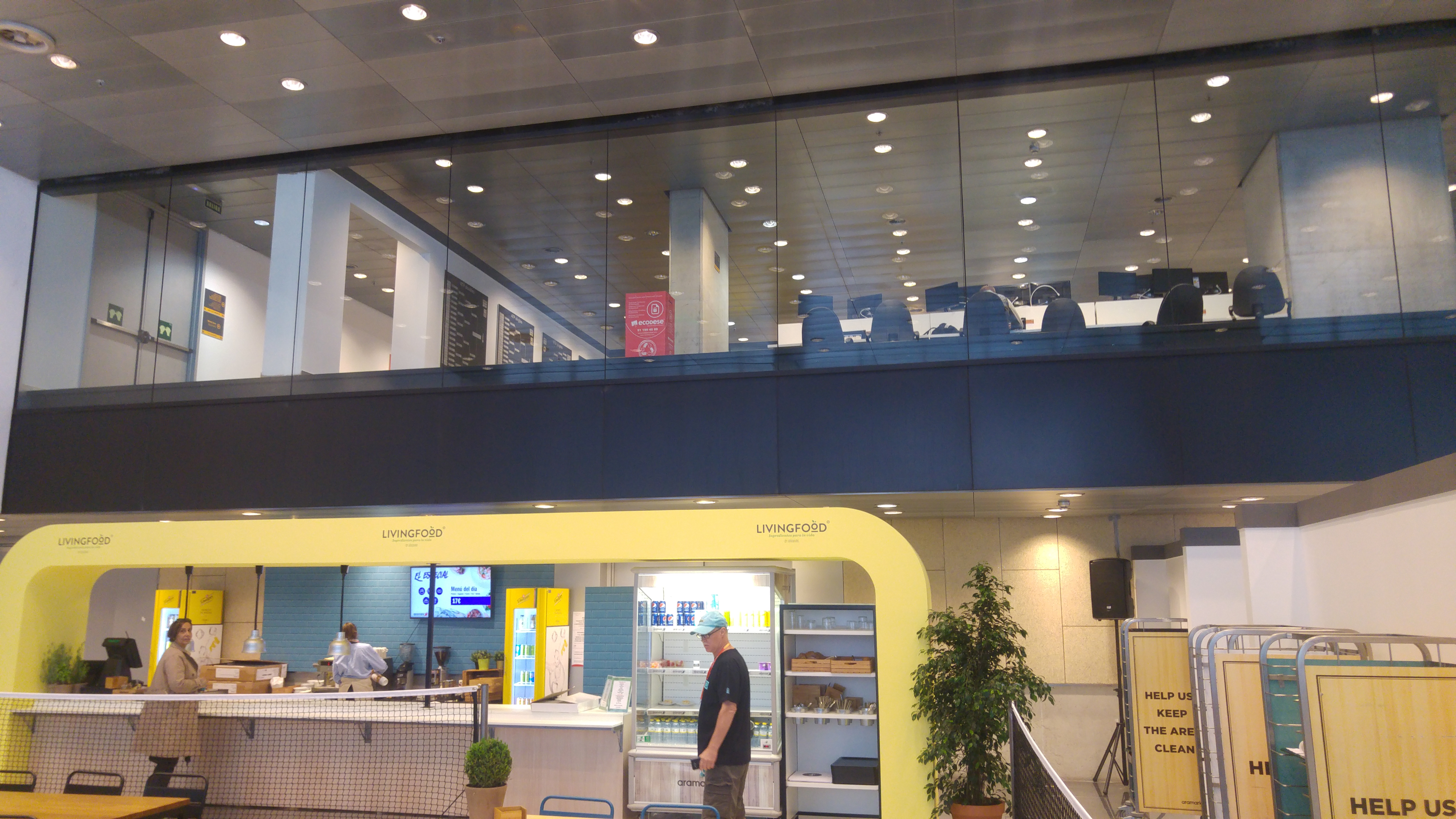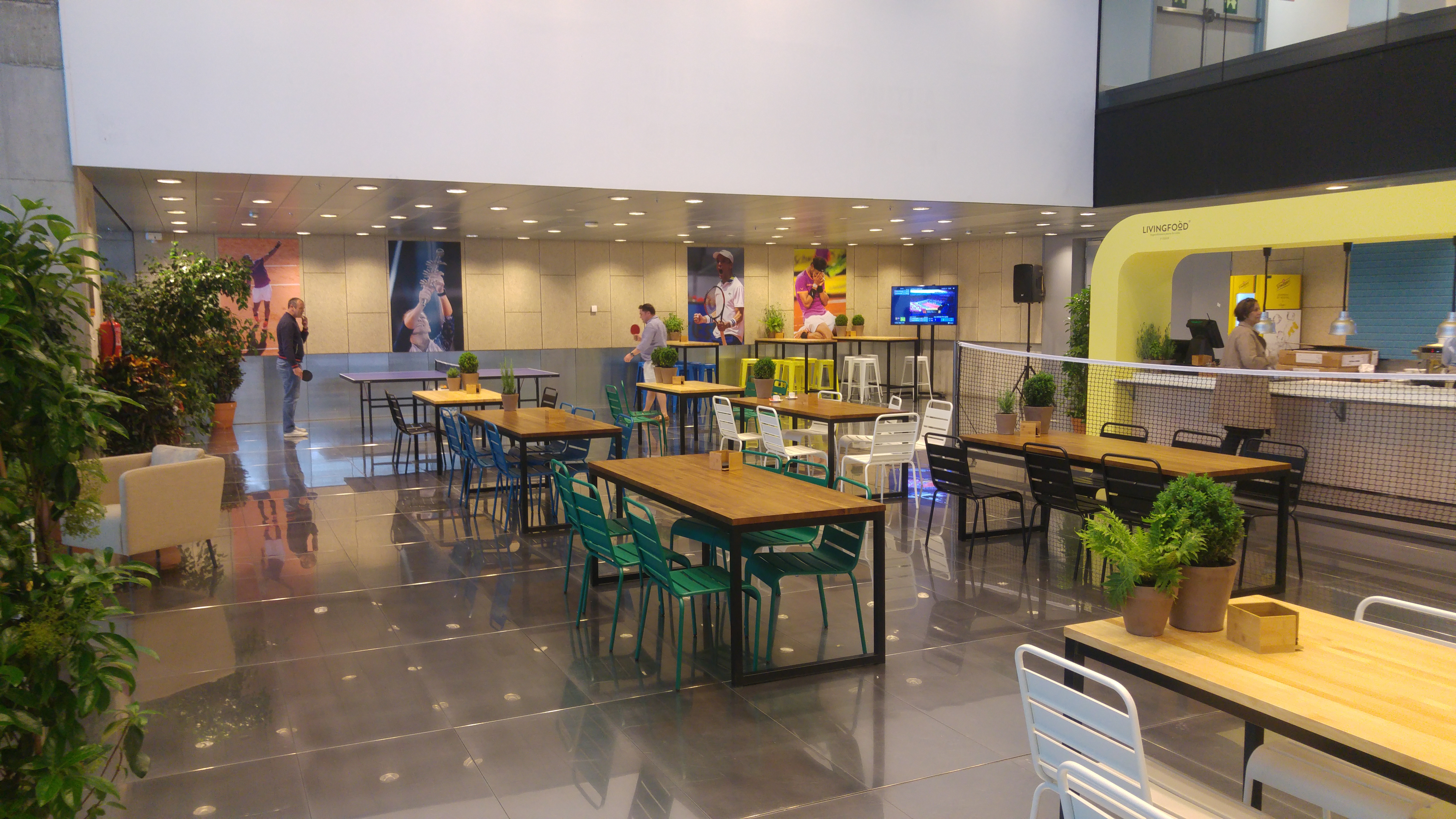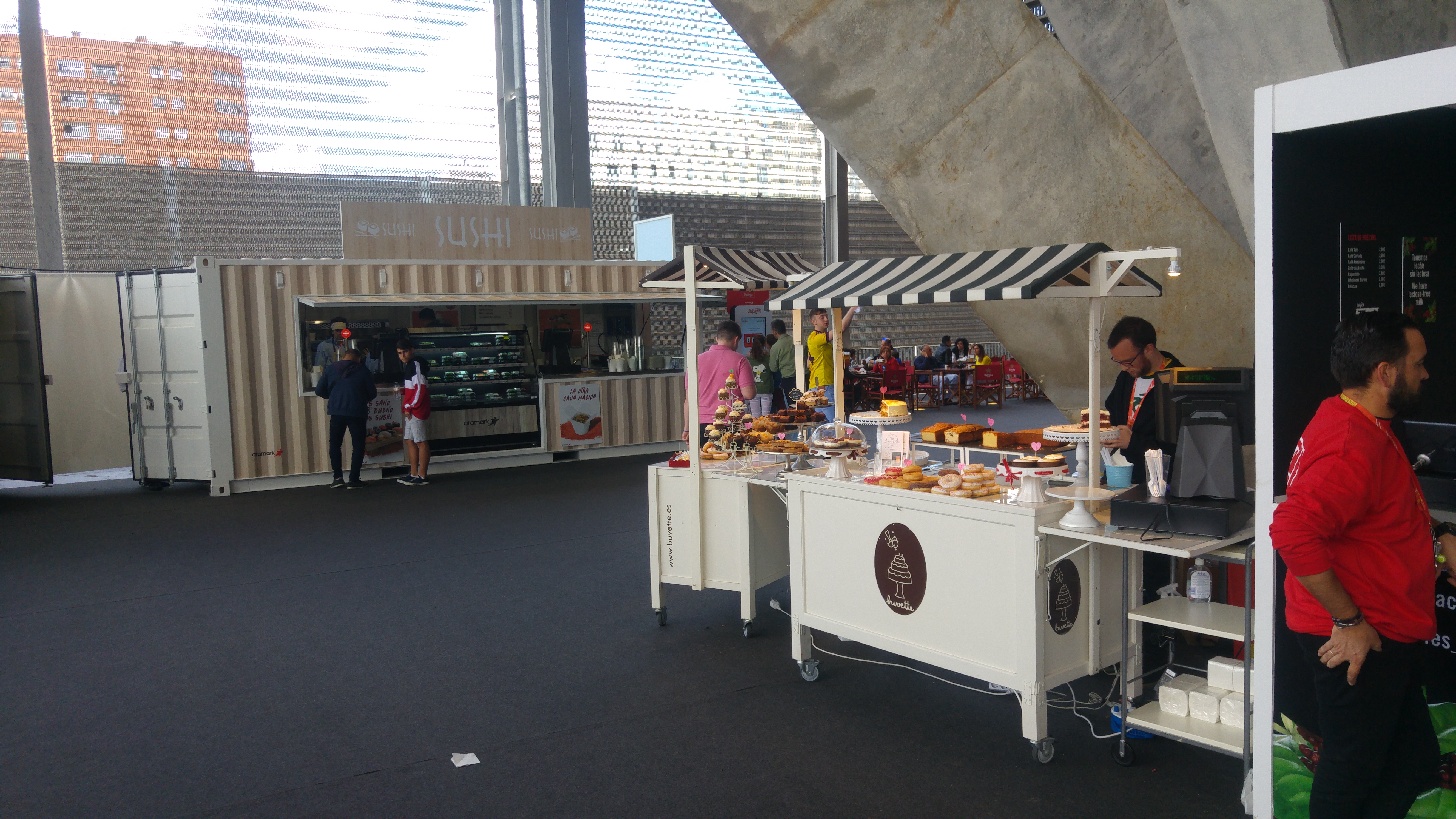 Stands publicitarios en el subsuelo de la Caja Mágica