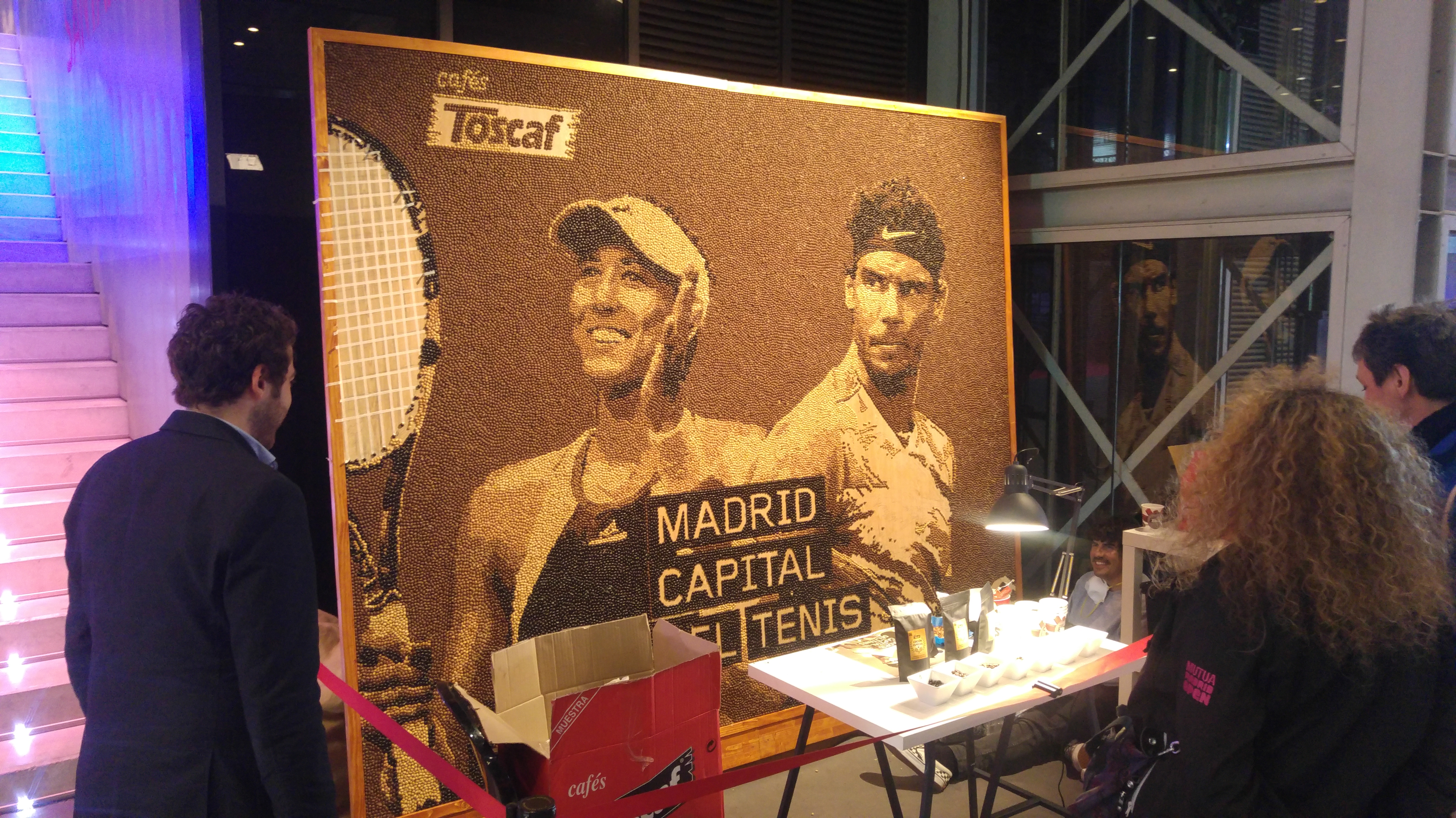 Mosaico con granos de café de Garbiñe Muguruza y Rafa Nadal