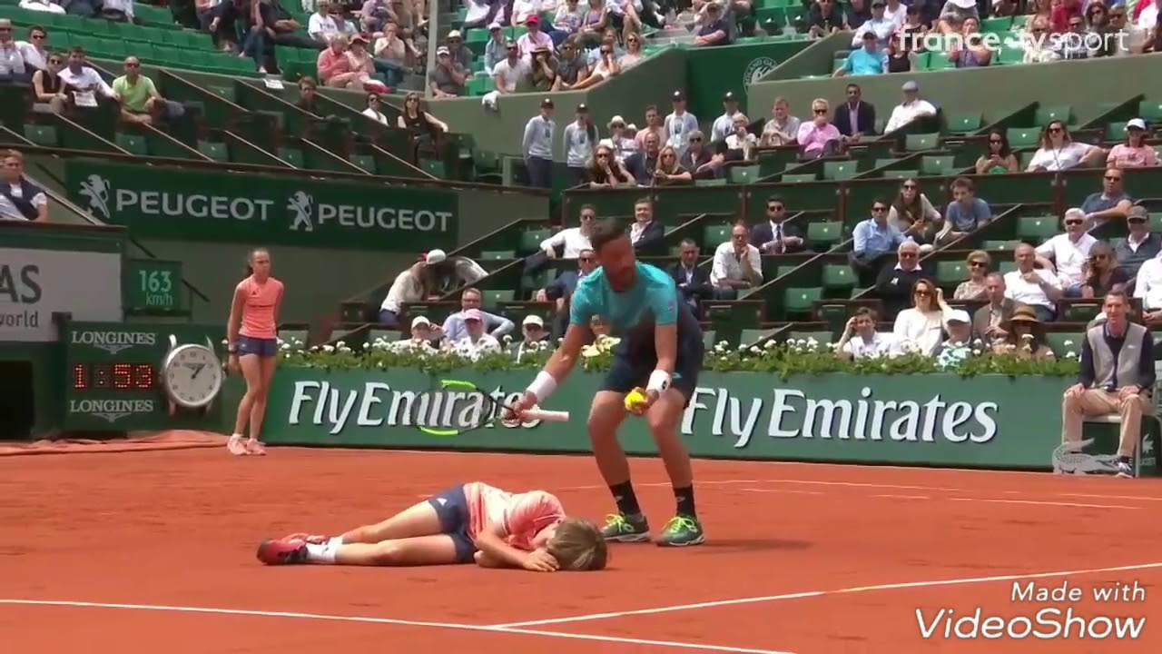 El terrorífico golpe entre un recogepelotas y un tenista en pleno partido de Roland Garros