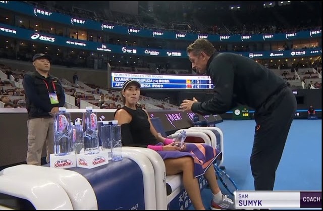 Sam Sumyk le pidió a Garbiñe que intentase mejorar su primer servicio y ella le contestó que no tenía "ese jodido primer saque". El entrenador se marchó resignado. La española cayó en China.