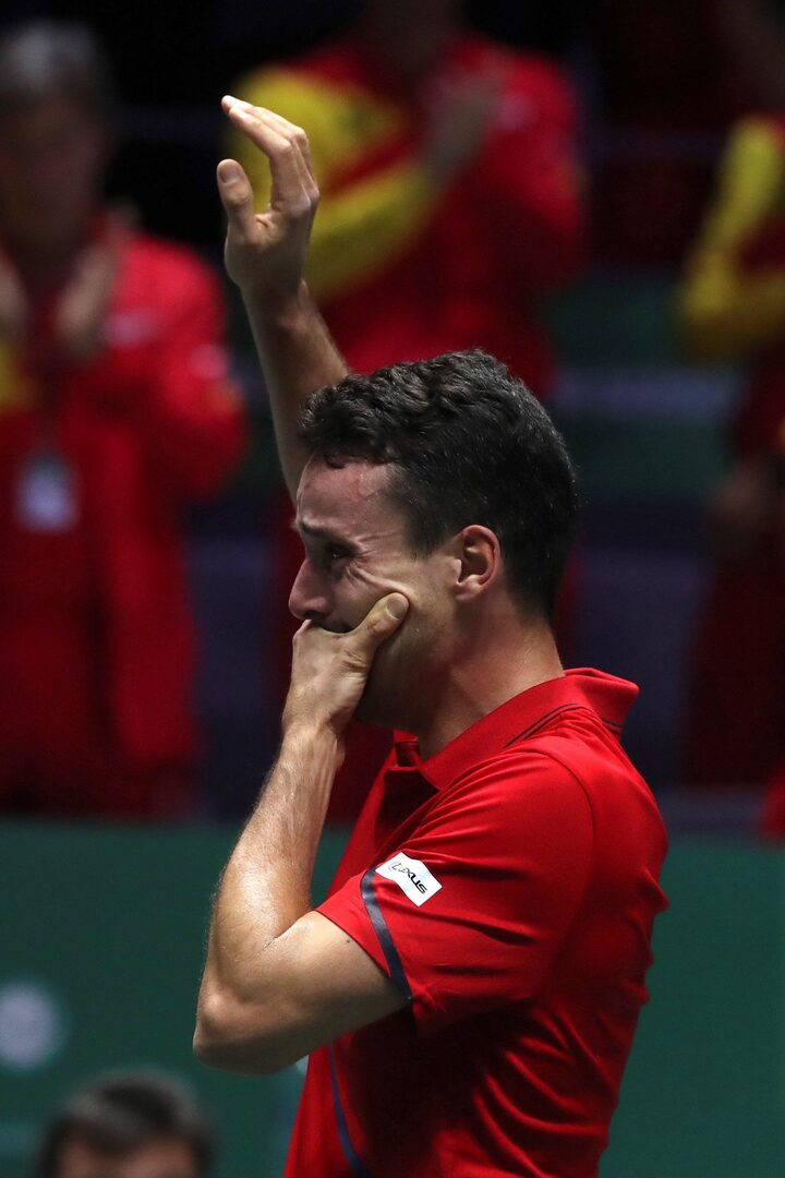 Roberto debutó el lunes con España, volvió a jugar el miércoles y ya en la mañana del jueves tuvo que marcharse a Castellón por el fallecimiento de su progenitor. Bautista, como es lógico, no estuvo en la eliminatoria de cuartos del viernes ante Argentina, pero en el equipo español ya avisaron de la posible presencia el sábado de Roberto. Así fue. Bautista, aún con la muerte de su padre reciente llegó a la Caja Mágica, escuchó el himno junto a sus compañeros y vio toda la serie ante Gran Bretaña desde el banquillo. Una frase de un miembro del equipo español resume a Roberto Bautista: "No sabéis lo fuerte que es". Ya de por sí su sola presencia junto al equipo era una declaración de intenciones y fortaleza por parte del guerrero Bautista, pero lejos de quedarse ahí le dijo a su capitán, Sergi Bruguera, que estaba preparado para jugar la final.