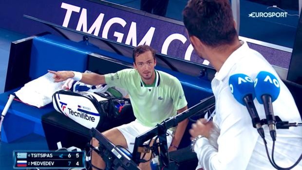😳Là, Medvedev il a totalement fissuré. Craquage complet face à l’arbitre de chaise 🤬#AusOpen pic.twitter.com/3iTk2MFTOa