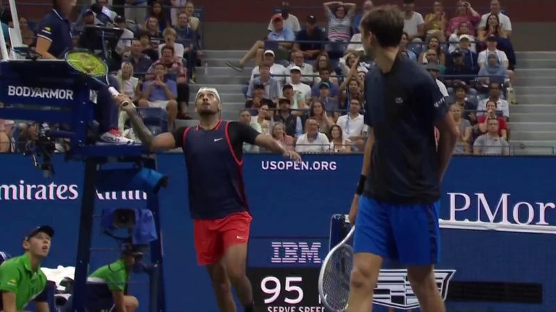 El controvertido tenista australiano Nick Kyrgios ofreció este domingo su mejor versión y eliminó en octavos de final del US Open al ruso Daniil Medvedev, número uno del mundo y vigente campeón de este Grand Slam. Kyrgios se impuso por 7-6(11), 3-6, 6-3 y 6-2 en dos horas y 53 minutos. Pero al margen de sus espectaculares golpes, el partido tuvo de todo.