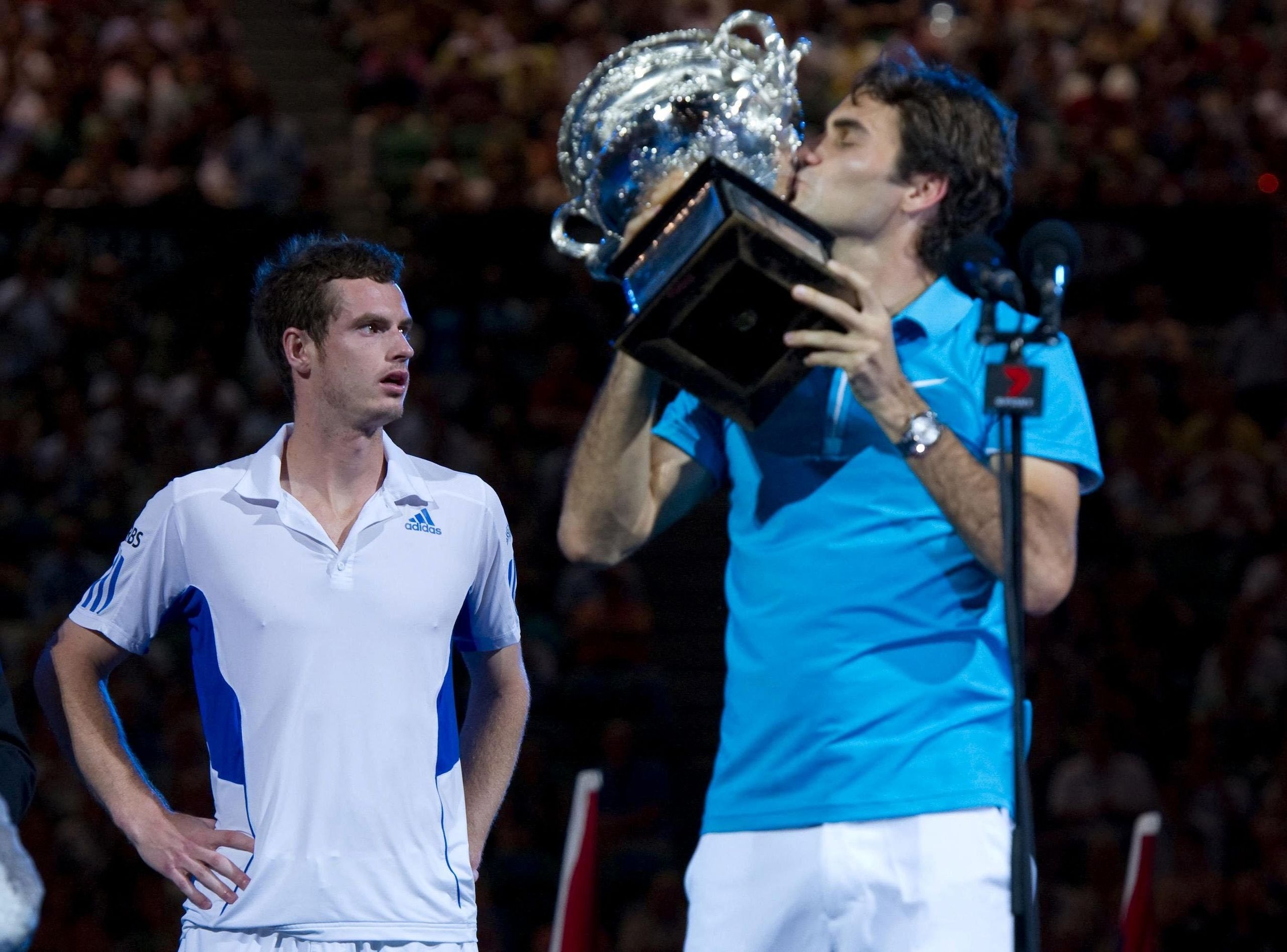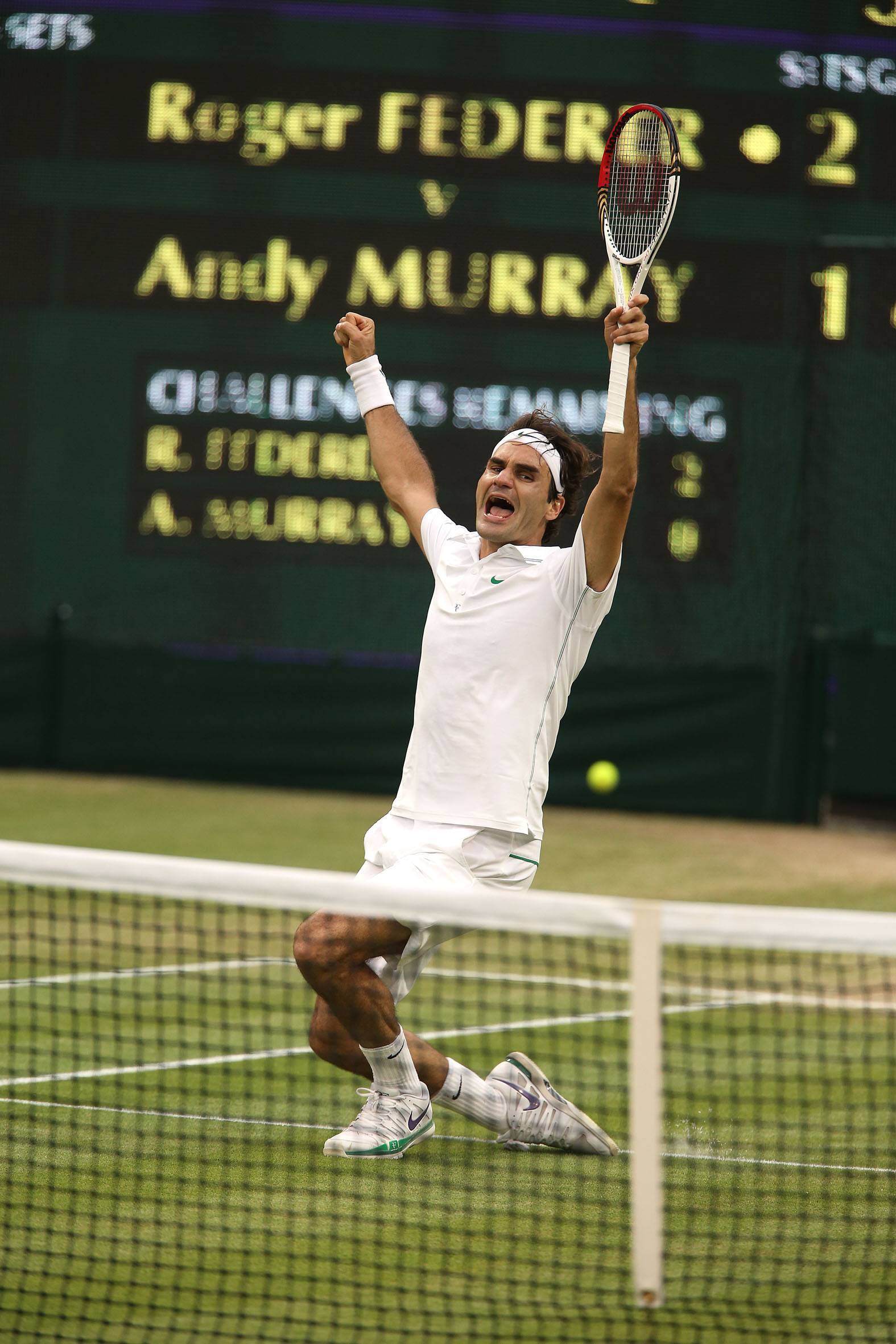 4-6, 7-5, 6-3 y 6-4. Otra vez ante Murray, que acabó llorando en Londres tras perder otra final contra Federer.