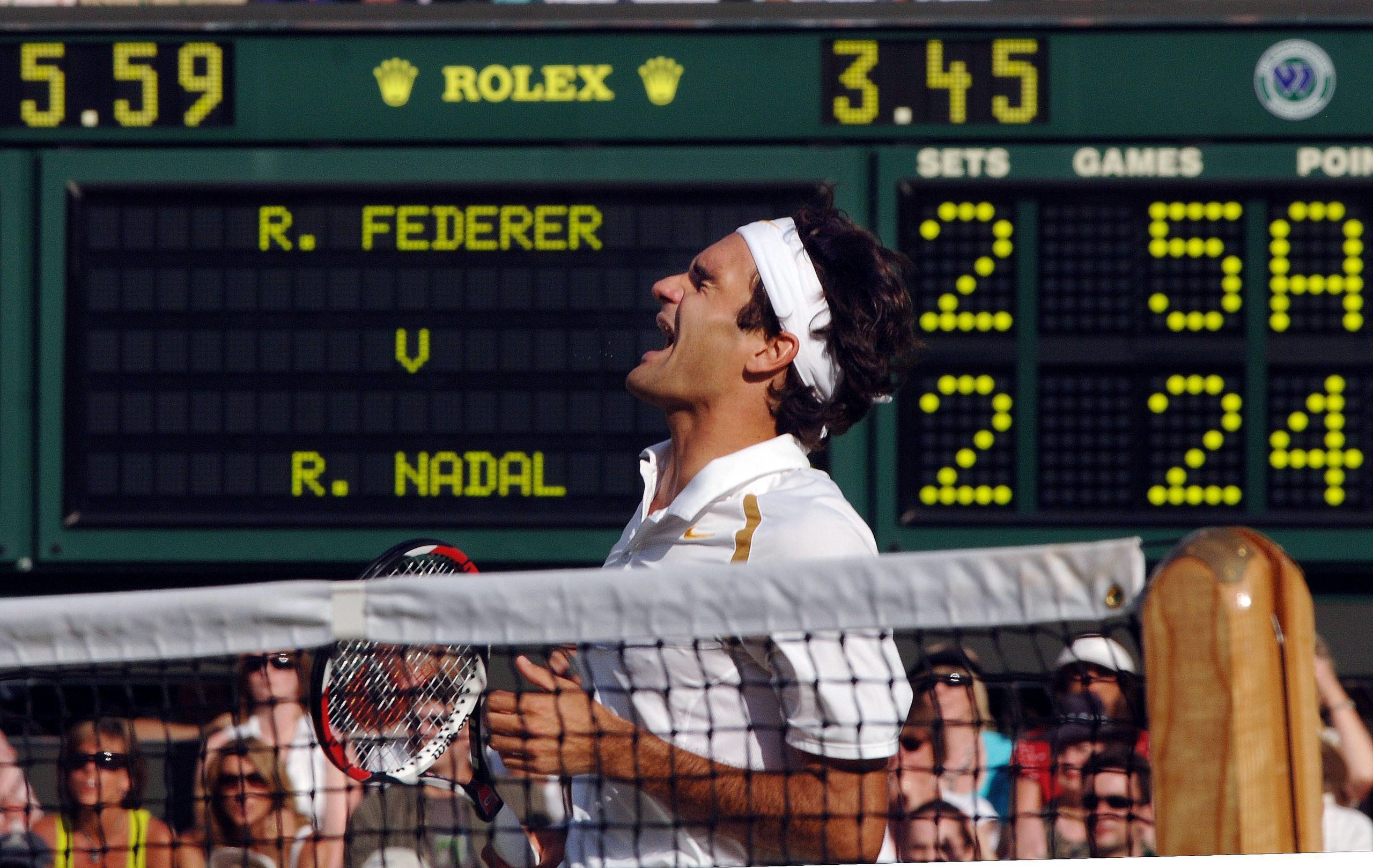 Antes de que Rafa ganase a Roger en 2008 en el mejor partido de todos los tiempos, Roger le ganó en 2007 otra final más de Wimbledon. La segunda. 7-6 (7), 4-6, 7-6 (3), 2-6 y 6-2