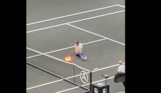 El hombre se quedó varios segundos en el centro de la pista intentando apagar las llamas de su brazo y cuando la seguridad fue a sacarle del recinto se dejó caer en peso muerto para dificultar el trabajo de dichos operarios. La imagen fue dantesca y los presentes, incluyendo a Stefanos Tsitsipas y Diego Schwartzman, se quedaron con la boca abierta.