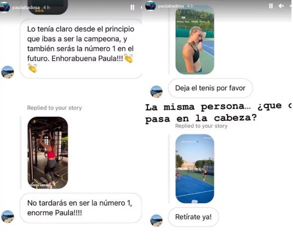 "La misma persona... ¿qué os pasa en la cabeza?", comenta Paula refiriéndose a este sujeto. La tenista española, que no está pasando un buen momento a nivel de resultados se toma con filosofía este tipo de cosas, al igual que sus derrotas últimamente.