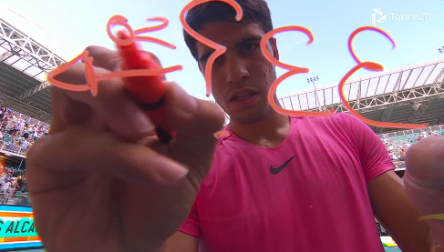 Carlos Alcaraz ya está en cuartos de final del Masters 1000 de Miami y lo celebró mandando un mensaje a Fernando Alonso a través de la cámara de televisión. Como es habitual en tenis, el cámara se acercó para la firma del español y este, que ganó por un doble 6-4 a Tommy Paul, quiso lanzar un mensaje al piloto asturiano.