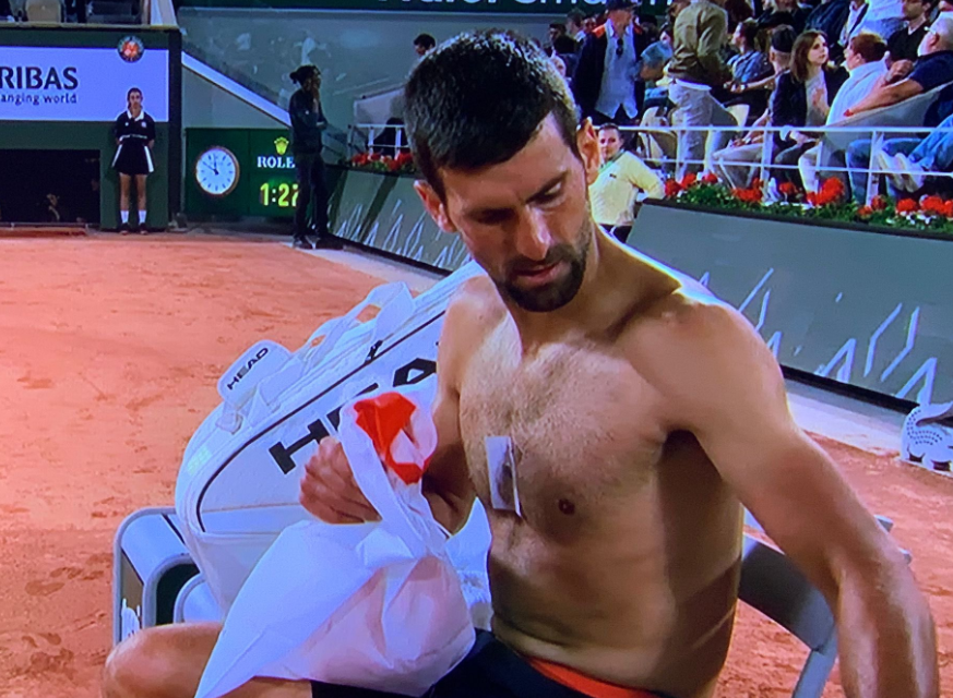 A mucha gente le sorprendió ver de repente a Novak Djokovic con un pequeño dispositivo en el pecho que se reveló cuando este se quitó la camiseta durante su duelo ante Fucsovics en segunda ronda de Roland Garros. Muchas teorías surgieron a partir de ese momento y todas ellas hablaban de control de glucosa, medidor de esfuerzos etc etc etc. Fue el propio Novak el que habló de ello en rueda de prensa.