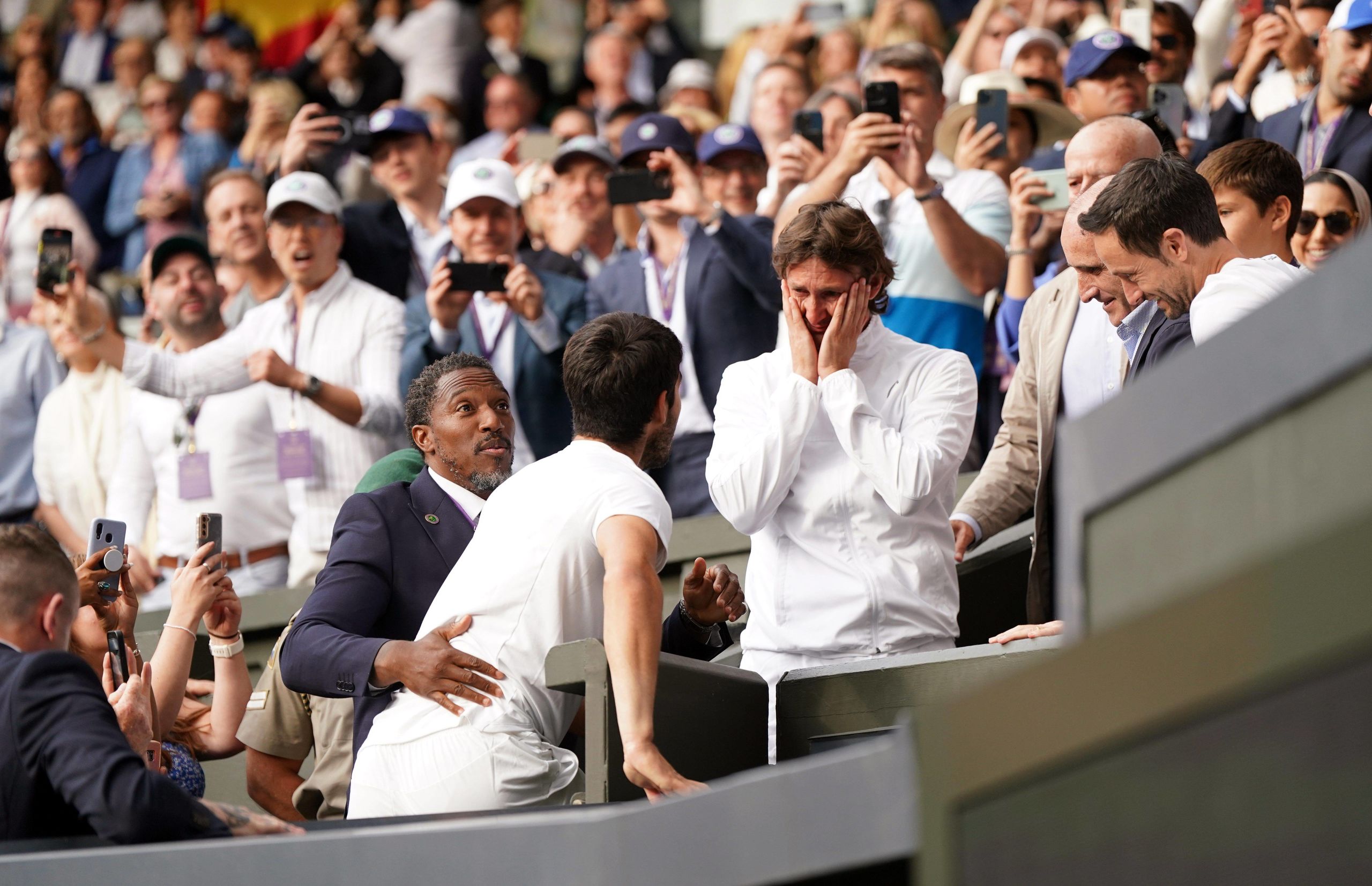 Tras imponerse a Djokovic, la primera persona a la que abrazó Alcaraz fue su entrenador, Juan Carlos Ferrero.