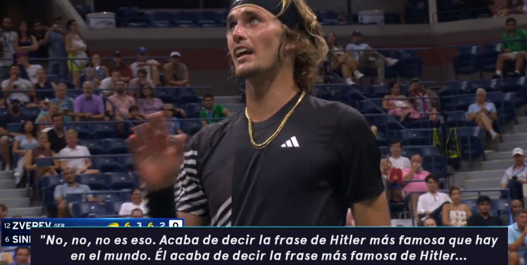 "Deutschland über alles (¡Alemania, por encima de todo!)", gritó un aficionado en la pista central del US Open. En ese momento, Zverev paró el encuentro y se dirigió al colegiado diciéndole lo siguiente: "¡Ha dicho la frase más famosa que hay de Hitler en el mundo! ¡Es inaceptable!".